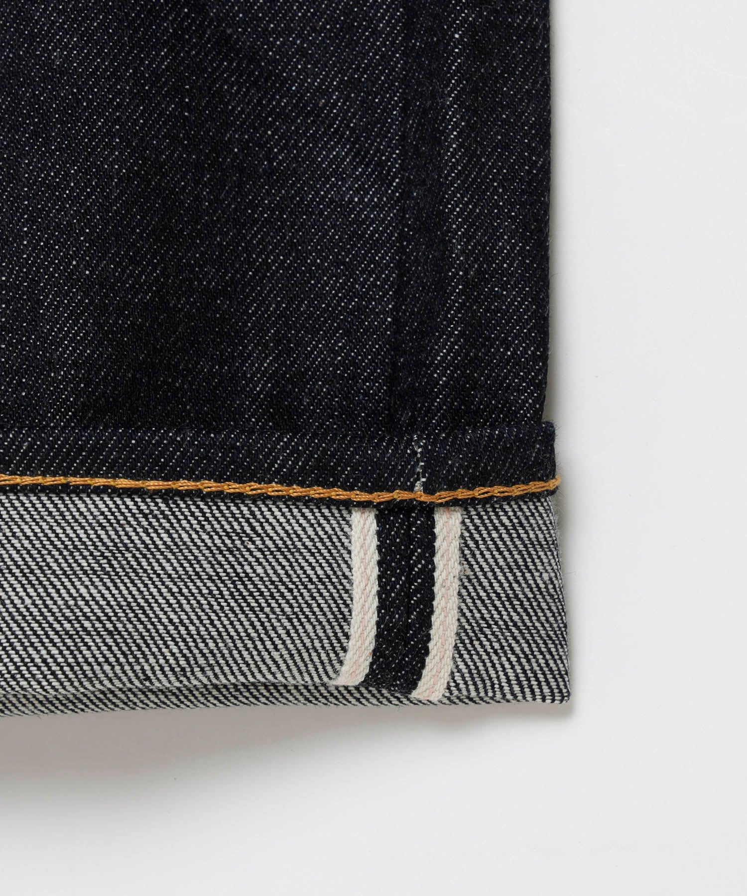 こちらは程良い厚みと生地感の13.5ozのリジッドのセルビッチデニムから仕立てられたストレートシルエット。足をすっきりと綺麗に見せてくれるようなサイズ設定になっていて、履きこんでいくうちによりデニムが足に馴染むのも楽しめる一本。