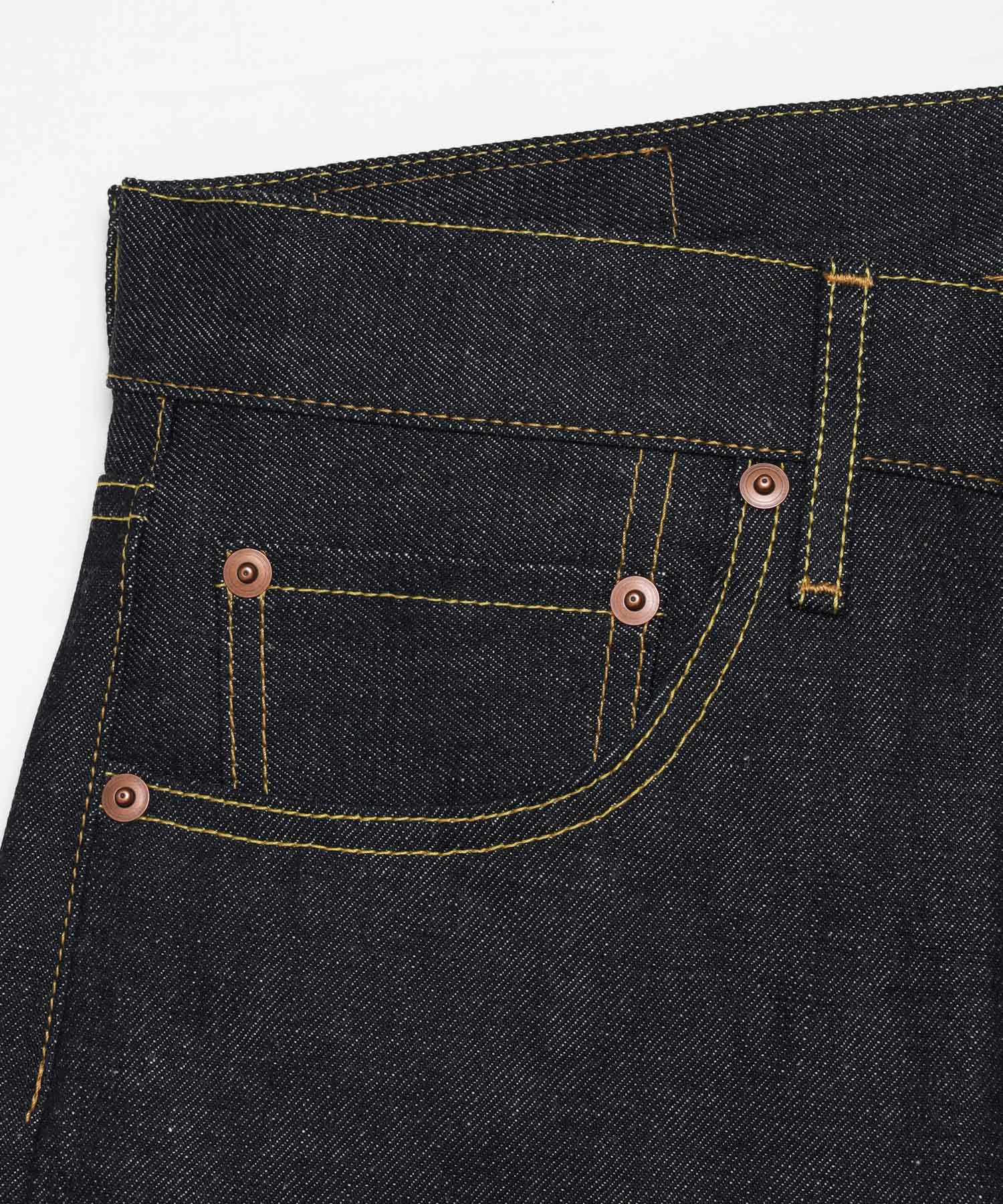 リジッドデニムならではの色落ちや経年変化も楽しみつつ、シンプルなデザインでコーディネートにも取り入れやすいジーンズ。