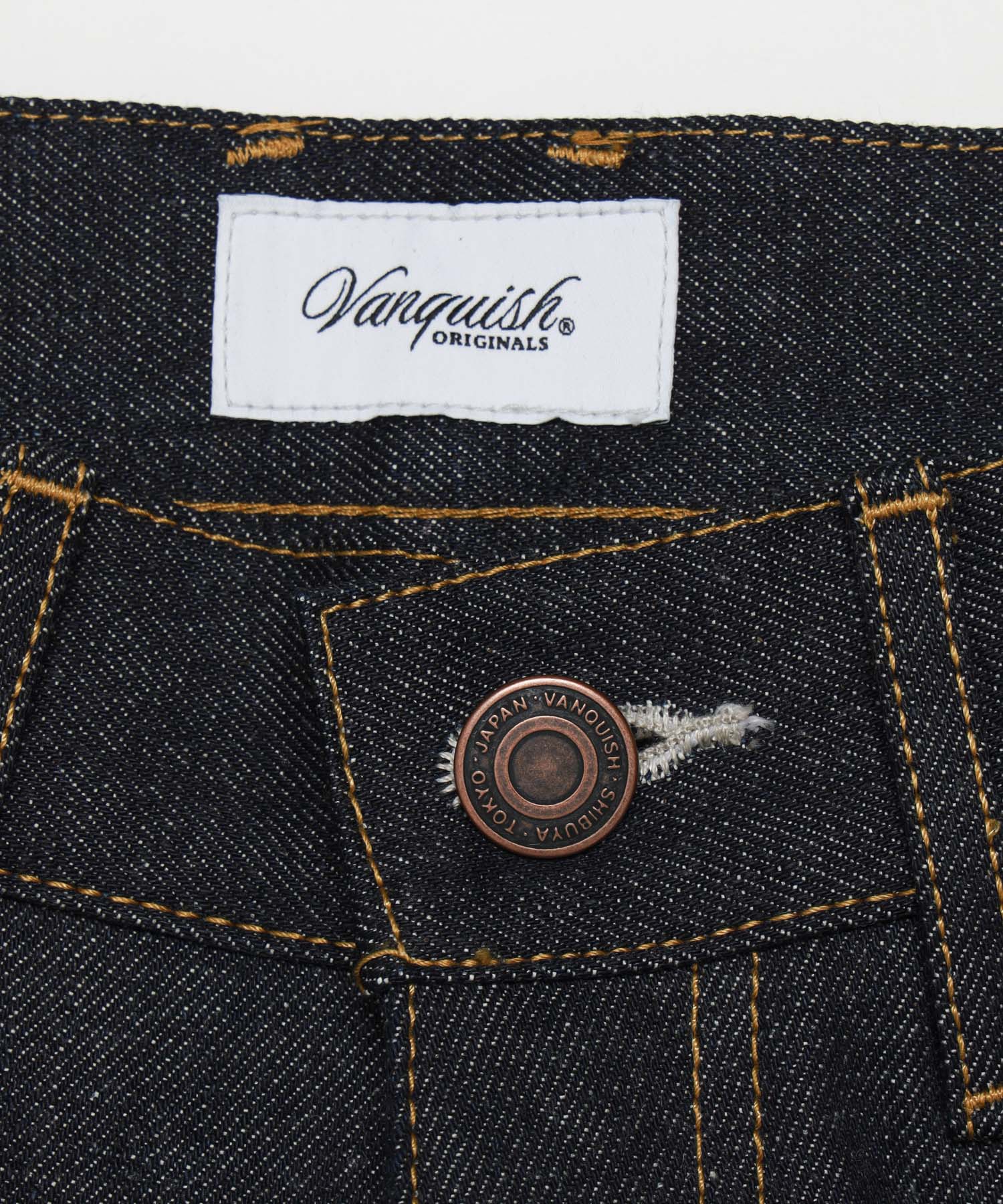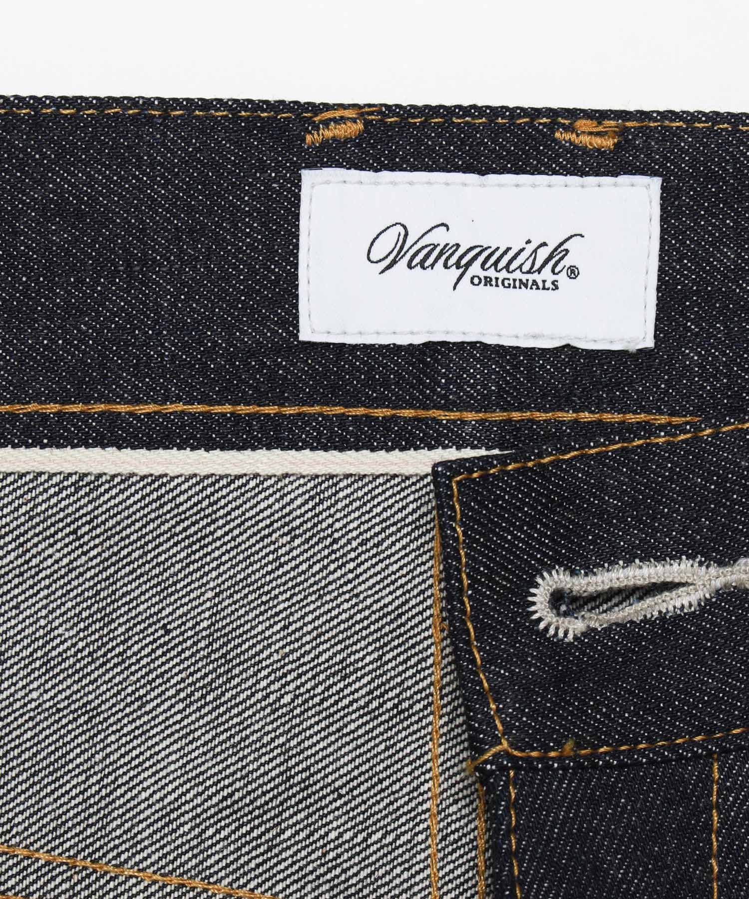 ベルトループにはVanquishデニムの特徴的なデザインでもあり頭文字のVが取り入れられていたり、オレンジのステッチワークが映える仕上がり。